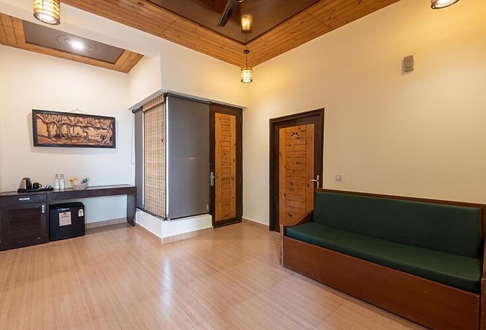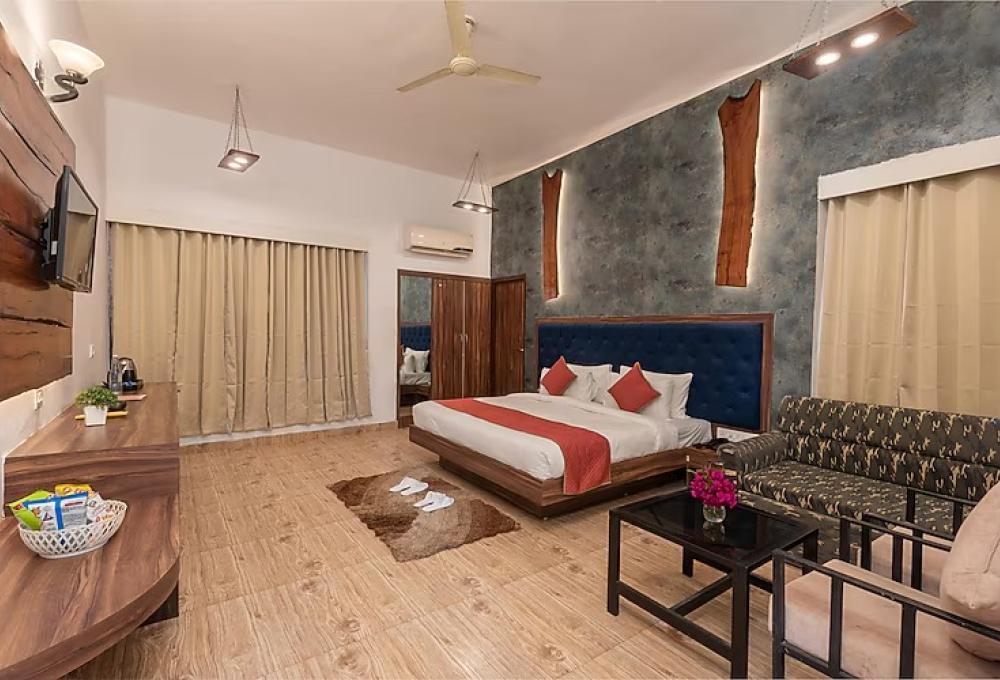 The Sambar Room at The Roar Resort offers a spacious and comfortable stay amidst the peaceful natural surroundings near Jim Corbett National Park 250 SQ.FT