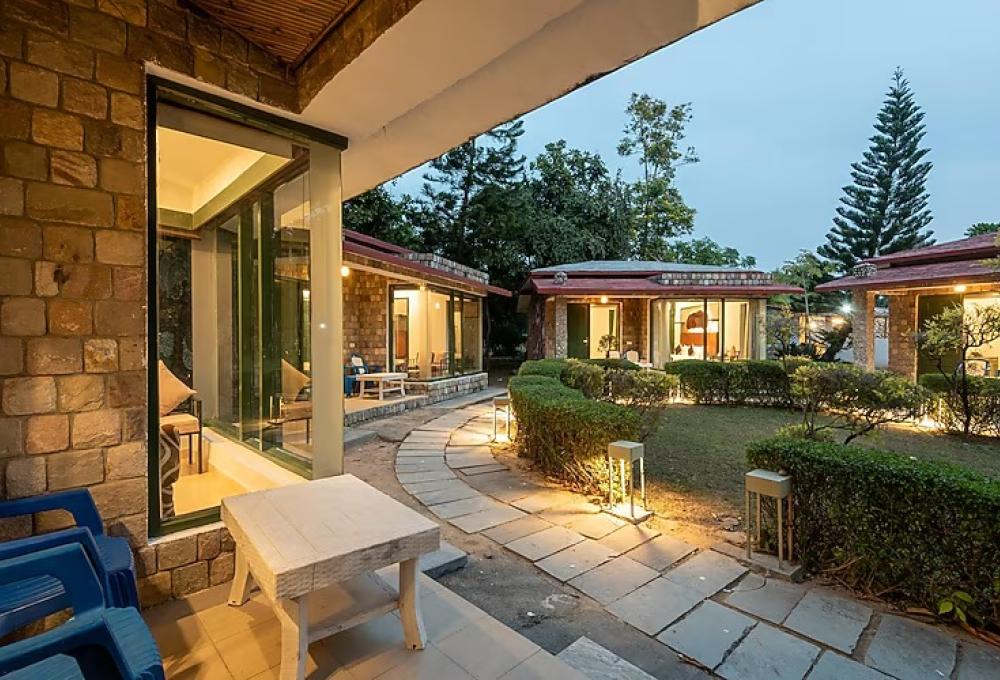 The Roar Resort is a luxury wildlife retreat located near Jim Corbett National Park in Ramnagar. Surrounded by lush forests and natural landscapes, the resort offers a perfect combination of comfort, adventure, and nature. Spread across a large property with more than 50 rooms, cottages, and suites, it provides modern amenities along with peaceful garden and mountain views.
